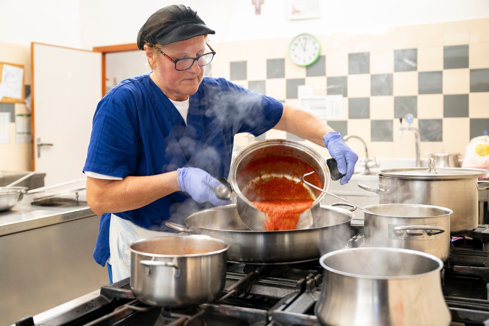Il servizio di ristorazione prevede la preparazione di colazione, pranzo, merenda e cena negli appositi locali adibiti a cucina all’interno della struttura. Il personale professionale e ausiliario è a disposizione per soddisfare tutte le richieste culinarie in ogni momento della giornata accontentando tutte le richieste. I menù sono elaborati sulla base delle singole esigenze alimentari e della tabella dietetica della Asl