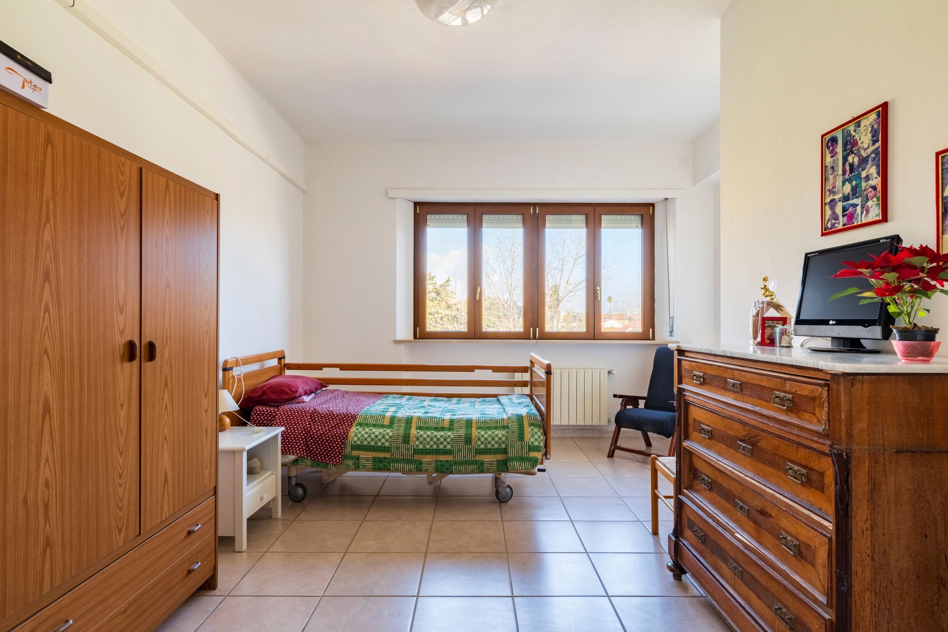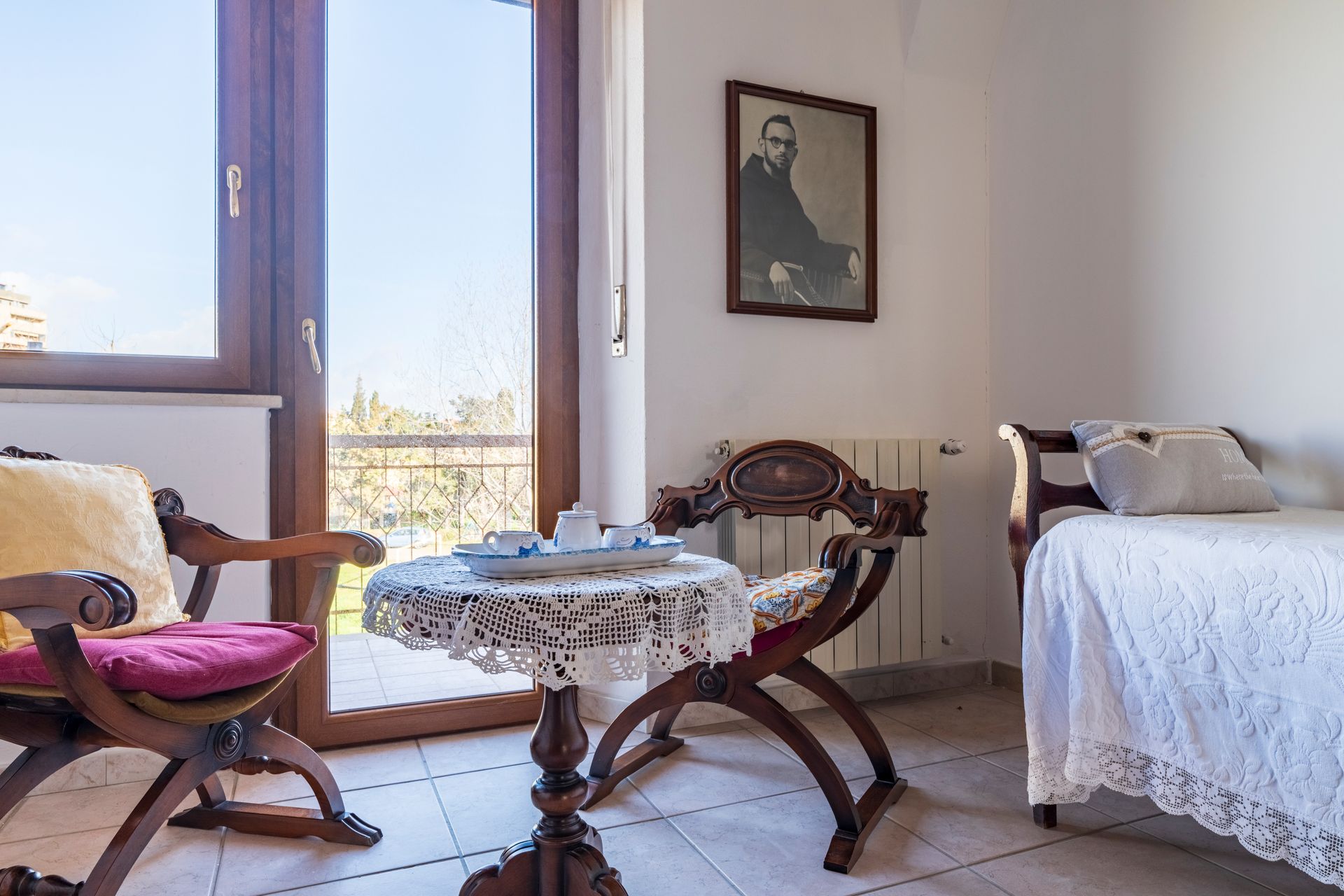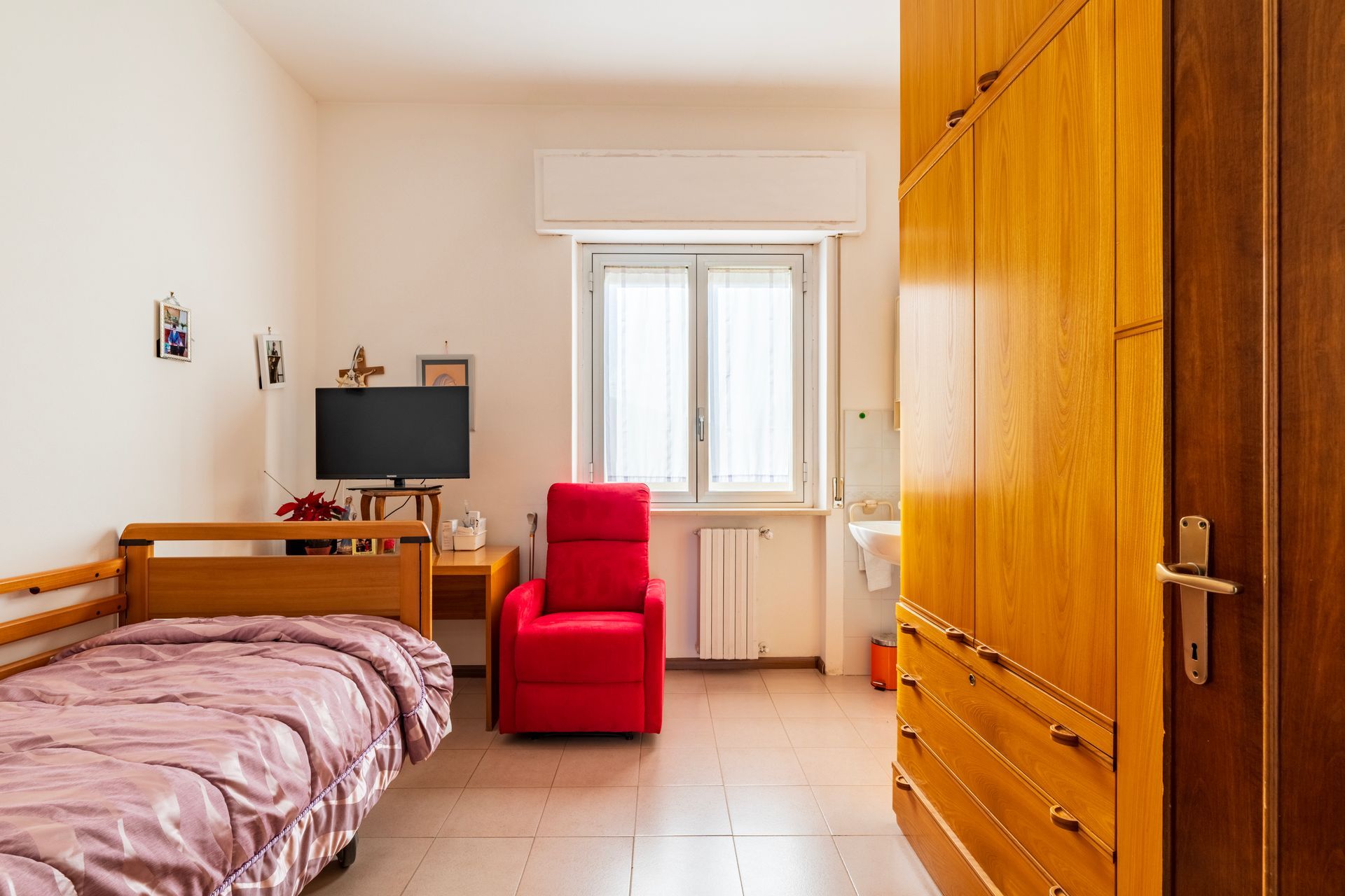 Tutte le camere sono ampie e confortevoli, luminose e climatizzate. Alcune camere hanno apposito bagno interno, altre sono servite da bagno in comune. In ogni piano è presente un bagno per disabili e una sala relax per attività a piccoli gruppi o accoglienza di parenti o ospiti. I piani sono serviti da ascensore e la struttura ha usufruito, nel corso degli anni, di lavori per l’abbattimento di ogni tipo di barriere architettoniche.